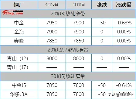 今日早間201冷軋青山代理高位持平,市場貿易商部分下跌10-50元/噸,市場早間價格仍偏高,實際成交仍多有優惠,報價和成交仍多有價差。