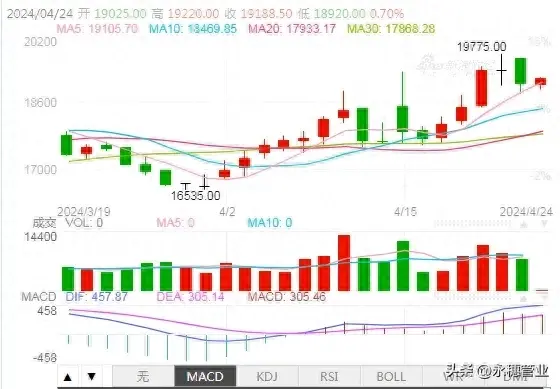 但到了22號的午后盤面出現轉綠的情況,跌幅加大超300,但夜盤又受到銅價的沖高下,倫鎳收回部分跌幅;但跌勢還在繼續,23號整體跌幅580,跌至19000關口附近,同時在考驗其的是否能支撐下去。