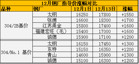而隨著漲價預期的確認,又導致空調企業12月產銷排產以同比近翻倍的漲幅增長,從而進一步加劇短期內企業對原材料的采購數量,造成目前需求大幅增加,并且此通脹循環還在繼續??照{企業正是目前國內制造企業的一個縮影,隨著原材料價格的大幅上漲,對成本因素非常敏感的傳統企業,都在加緊年前的原料采購。因此我們預計,短期內春節前,不銹鋼價格仍將維持高位水平。
