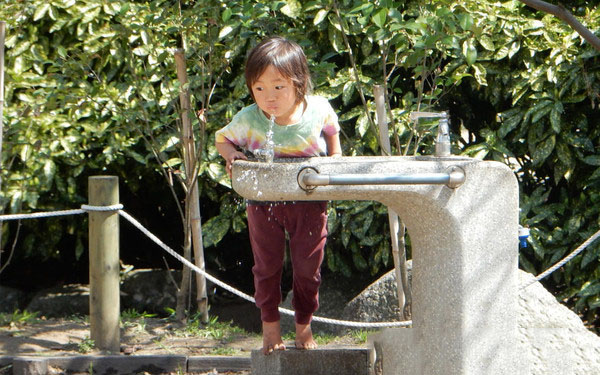 【隨處可見直飲水】日本的車站、公園、學校等公共場所大都設有免費的直飲水設施,這類直飲水龍頭多數是向上噴水的,口渴的行人不用杯子也可以打開龍頭直接飲水。